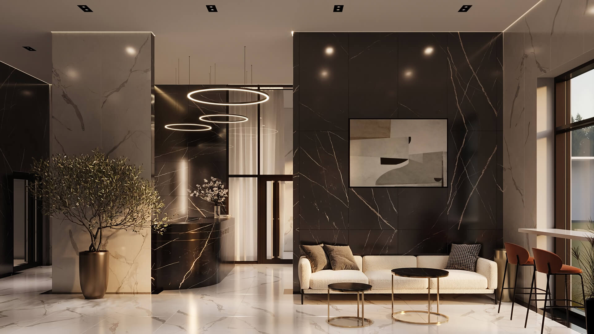 Лобби жилого комплекса «EVOPARK Сокольники» – это многофункциональное пространство, где каждая деталь продумана для комфорта жильцов и их гостей. Просторные зоны с современным дизайном, выполненным в ярких тонах с металлическими акцентами, создают атмосферу уюта и элегантности. Здесь предусмотрены все необходимые удобства: коворкинг для работы и онлайн-совещаний, зал для мероприятий, комната для мамы и ребенка, ресепшен и гостевые туалеты.